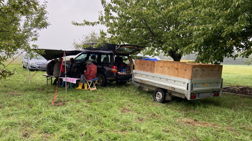 Im September jeden Jahres startet für uns die Erntesaison. Da sowohl frühe als auch späte Apfelsorten auf unseren Wiesen stehen, zieht sich die Erntezeit bis in den Oktober hinein.